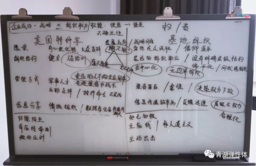 從分析美軍與基地組織的差異,到探討公司及部門內(nèi)部的管理,大家的思維脈絡(luò)逐漸清晰。當(dāng)然,觀點不分對錯,都是共同的知識結(jié)晶。